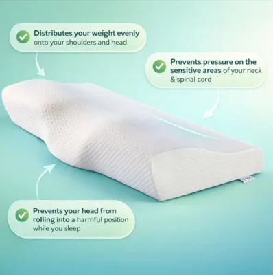 • Designed specifically for Cervical Spondylosis: shaped to distribute weight more evenly and reduce pressure build-up on sensitive areas.